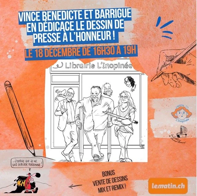 Trois grands noms du dessin de presse débarquent : Barrigue, Bénédicte et Vince